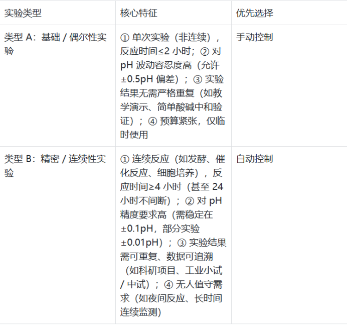 如果你的實驗涉及 “長時間連續(xù)反應(yīng)、高價值樣本、數(shù)據(jù)可追溯”,別糾結(jié) —— 自動控制的初期投入會很快通過 “人力節(jié)省 + 實驗成功率提升” 收回;如果只是偶爾做簡單實驗,手動控制可滿足基本需求,但需嚴(yán)格遵守 “分次少量、勤測勤記” 的原則,避免操作失誤。
